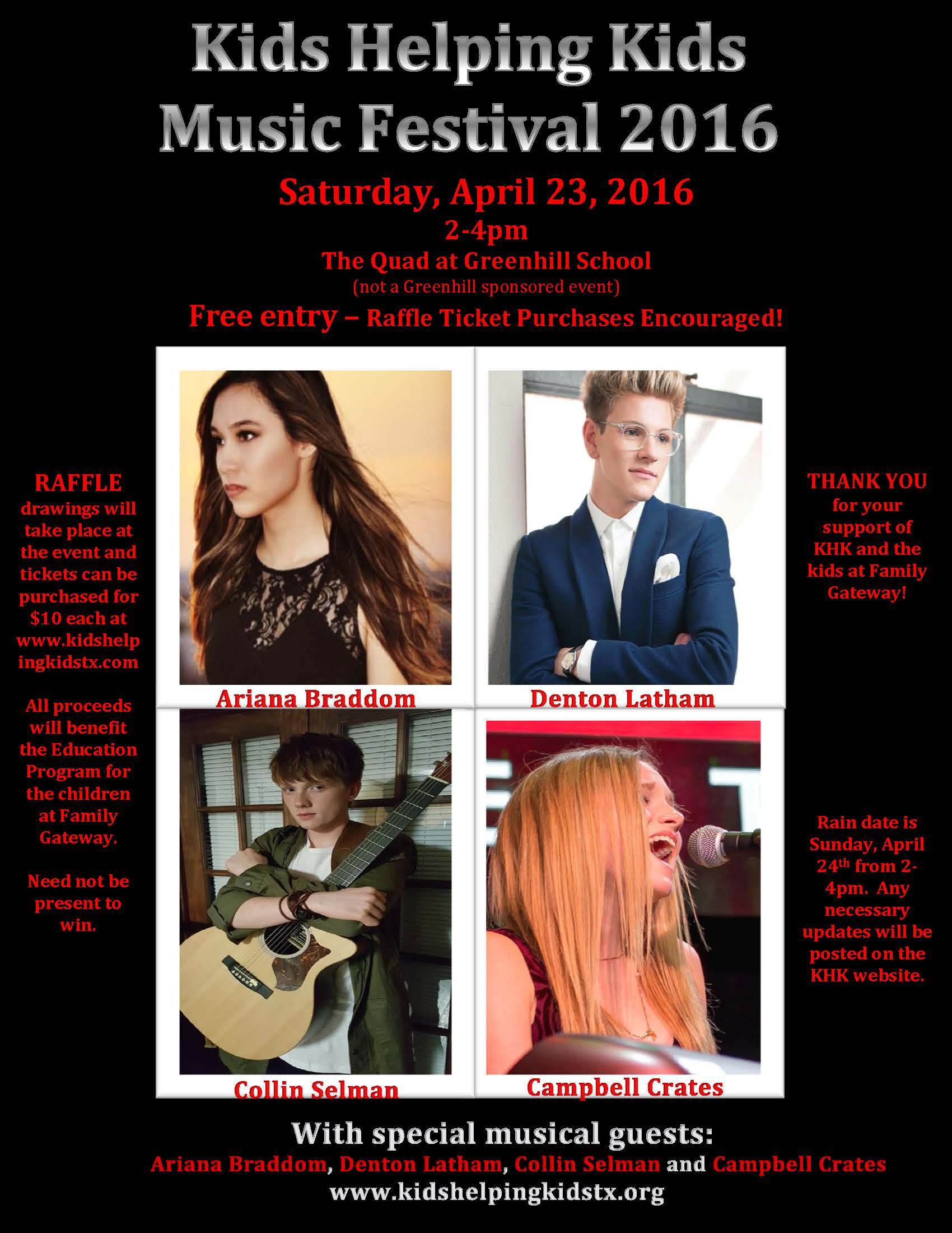 Spring 2016 KHK Music Festival Helps Raise Funds for Education Endowment at Family Gateway!